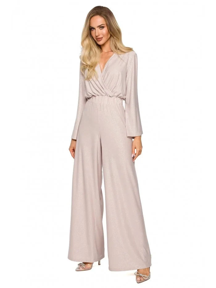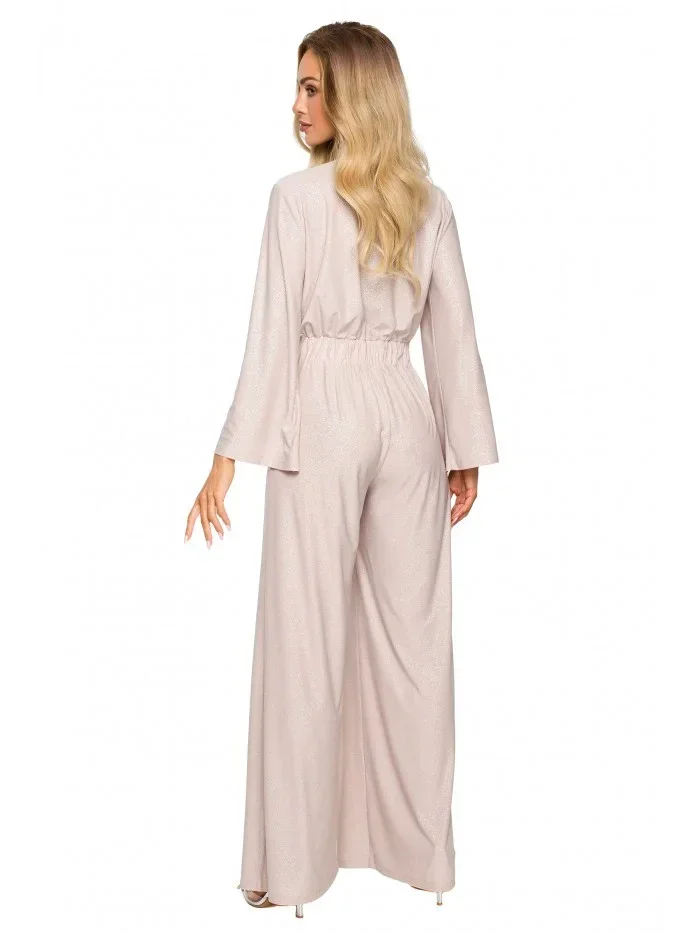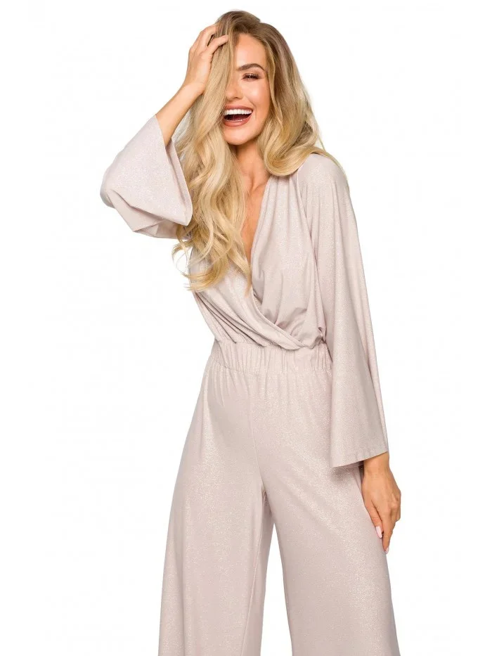 95% polyester 5% elastan Tento krásný overal má řadu předností. Je elegantní díky širokému střihu nohavic a rukávů, zavinovacímu topu a jemnému řasení , je praktický a také pohodlný. INFORMACE O PRODUKTU: úpletová tkanina s třpytkami jednodílný overal zavinovací top s dlouhými širokými rukávy elastický pas široké rozšířené nohavice naše modelka měří 171 cm a nosí velikost S