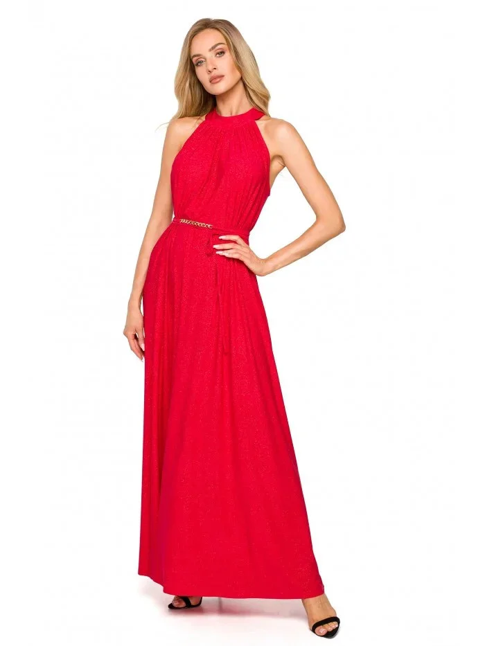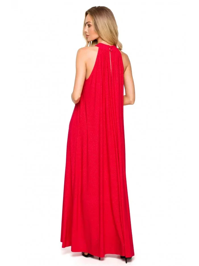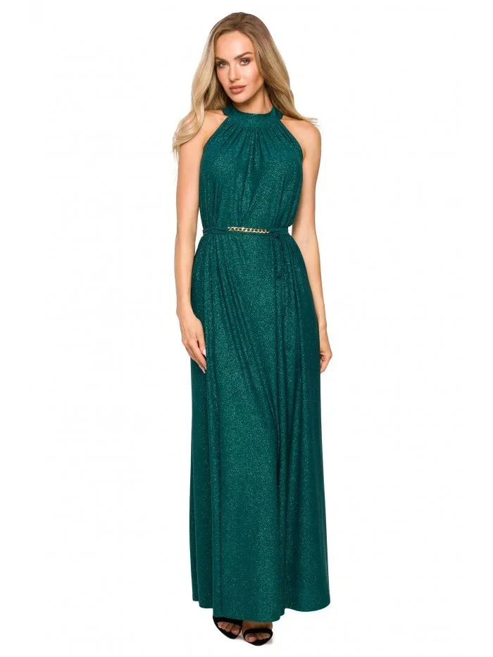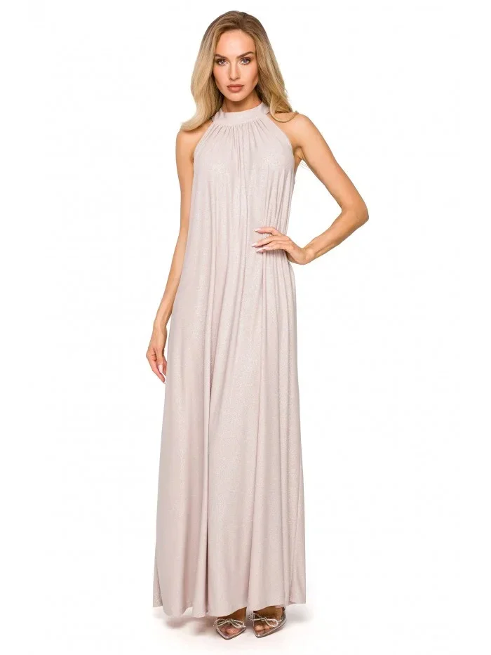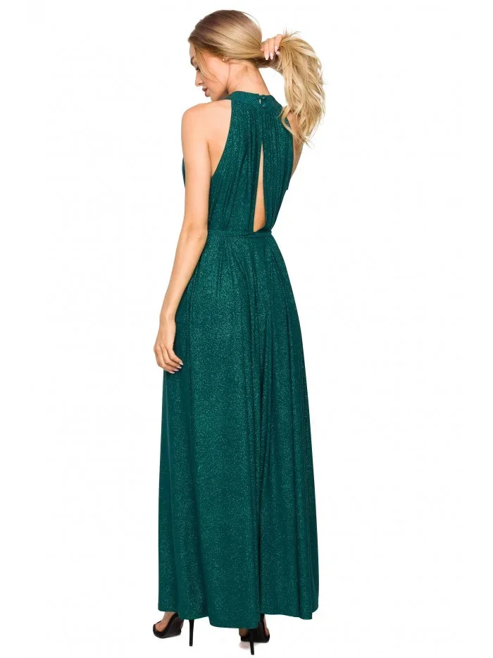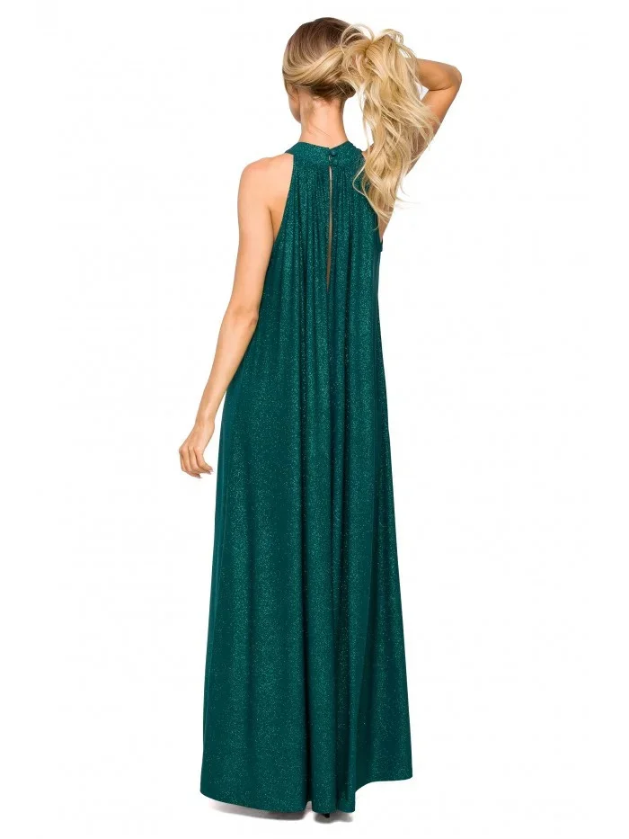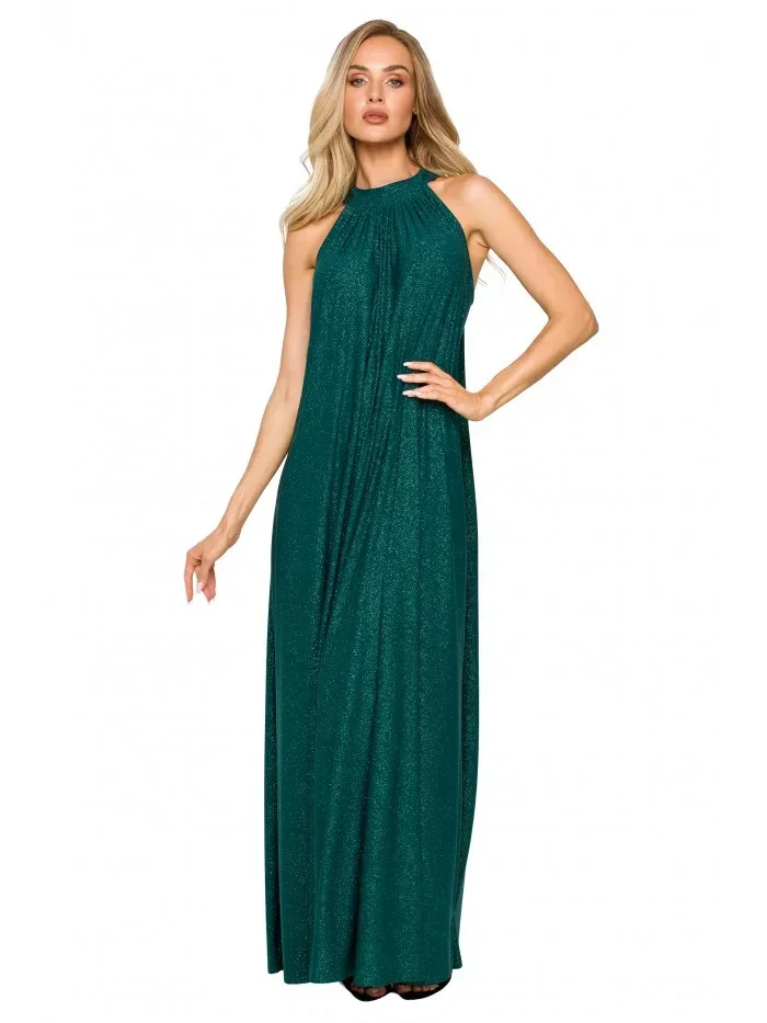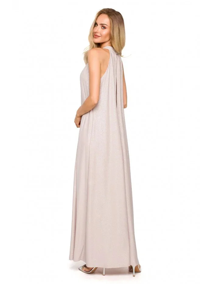 95% polyester 5% elastan Jedny šaty - mnoho možností střihu. Rozšířený střih s páskovým výstřihem a páskem na zavázání nabízí volnost pohybu a výběru. Šaty lze nosit buď volně, nebo stažené v pase. Informace o produktu:Pletené třpytivé maxi šaty s výstřihem bez ramínek a hlubokým rozparkem na zádech A-linie plného střihu přetažené přes hlavu zapínání na knoflíky a pásek na zádech bez podšívky Naše modelka je vysoká 171 cm a nosí velikost S