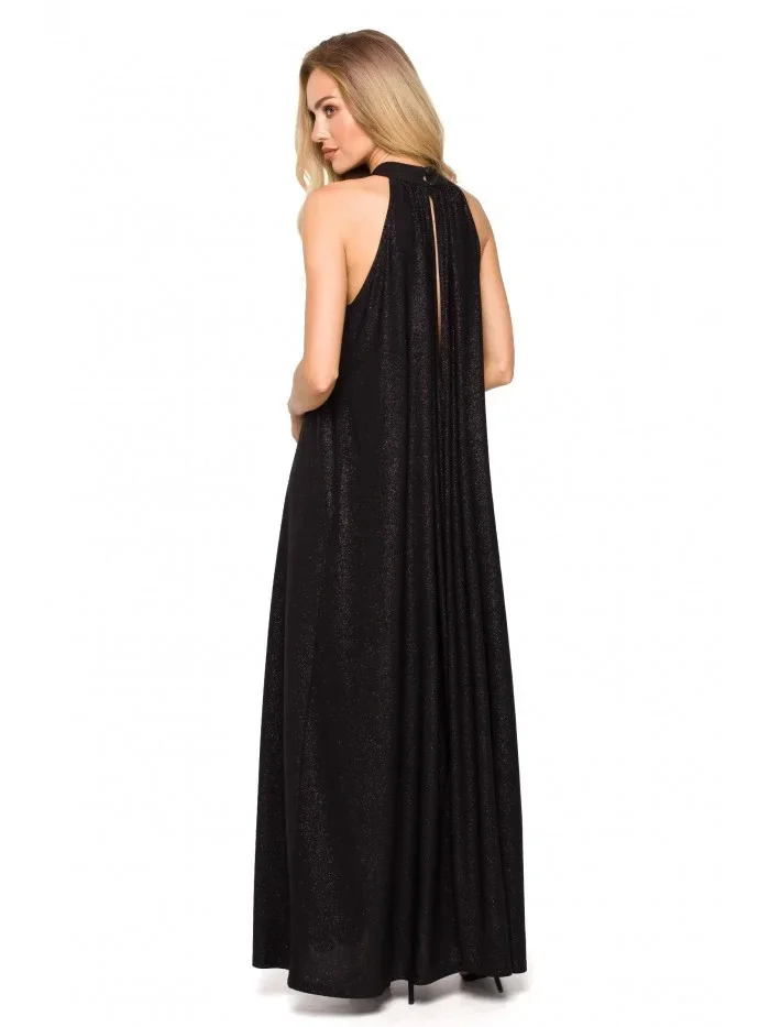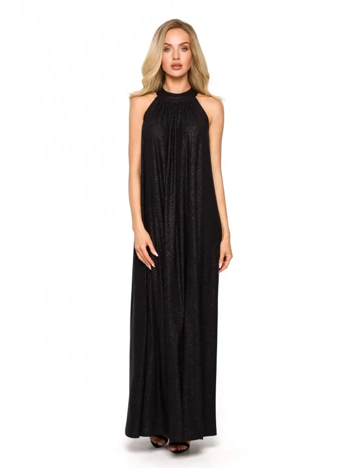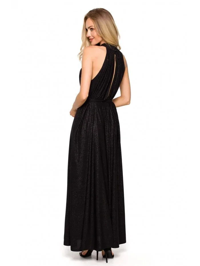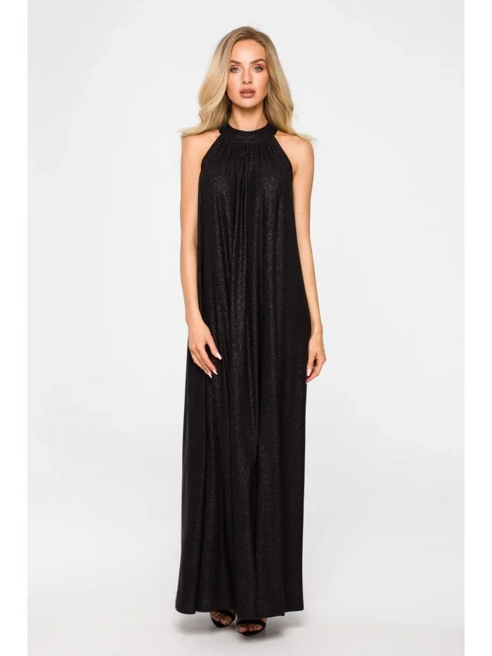 M721 Maxi šaty s výstřihem - černé