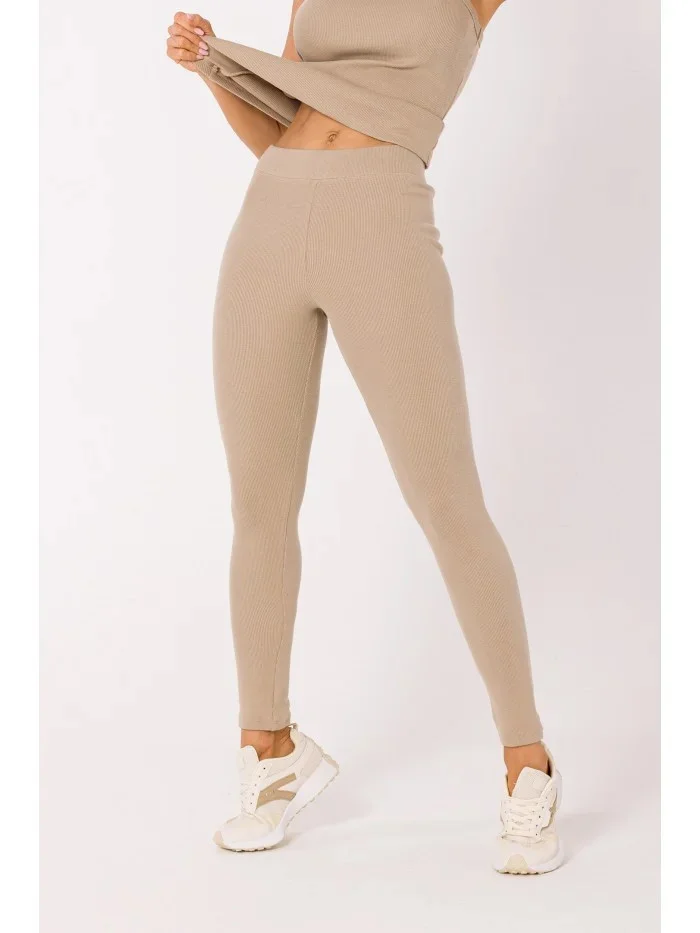M734 Žebrované pletené legíny - béžové