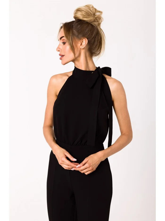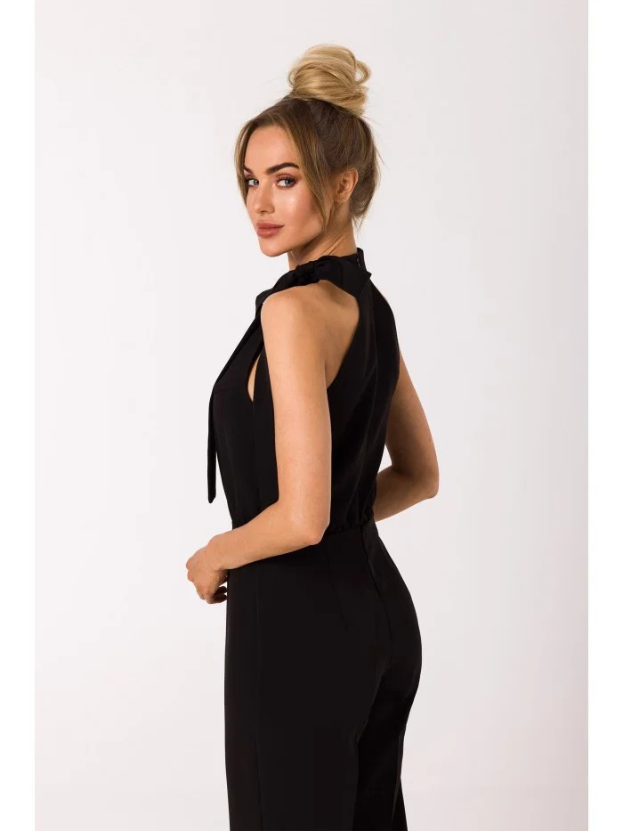 model 18383617 Kombinéza s výstřihem a vázáním černá - Moe