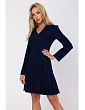 65 % polyester 30 % wiskoza 5 % elastan INFORMACE O PRODUKTU: pouzdrové šaty z tkané látky s límečkem a plisovaným spodním lemem výstřih do V a falešný zábal vpředu ozdobné knoflíky vpředu dlouhé rukávy délka nad kolena skrytý boční zip bez podšívky naše modelka je vysoká 171 cm a nosí velikost S Navrženo a vyrobeno v Polsku