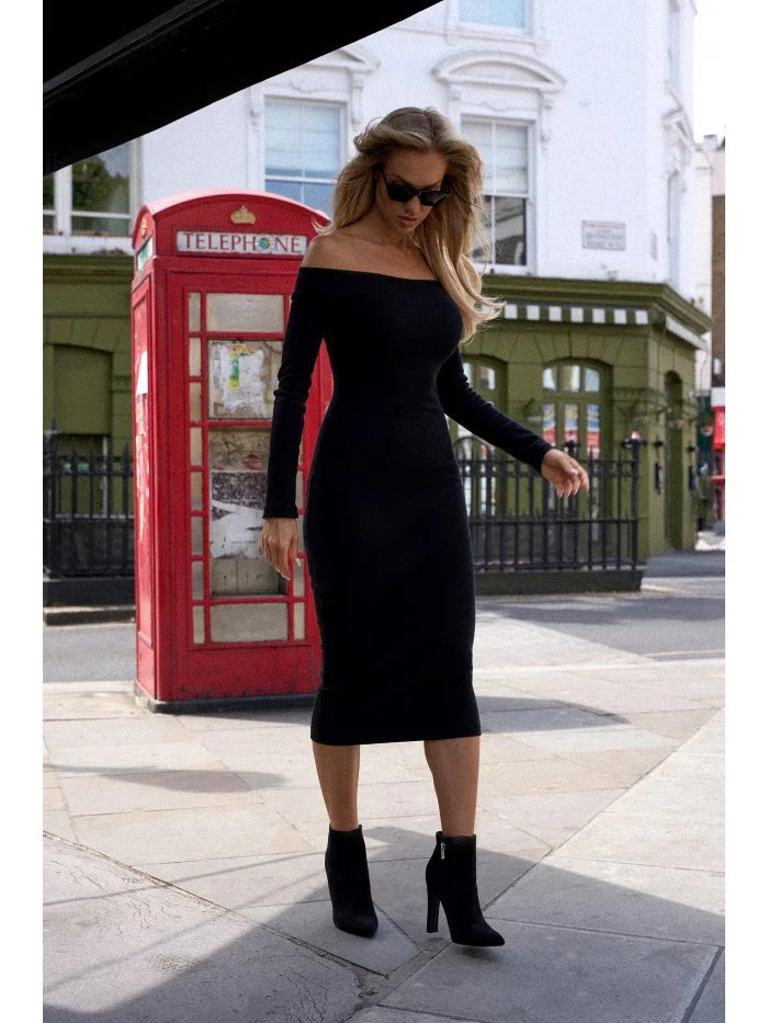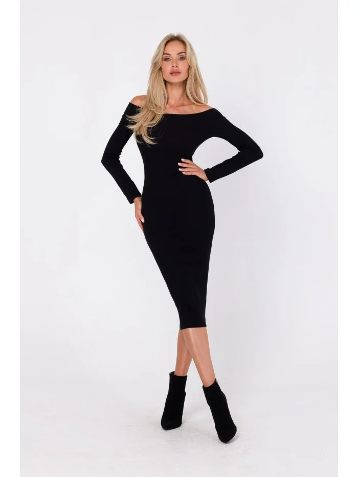 M757 Šaty na tělo s odhalenými rameny - černé