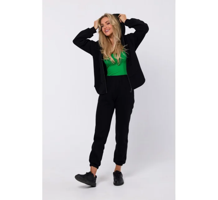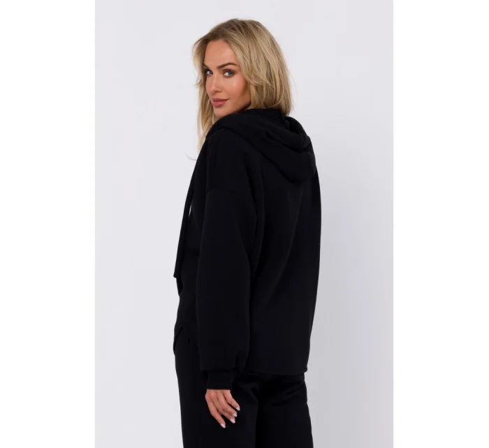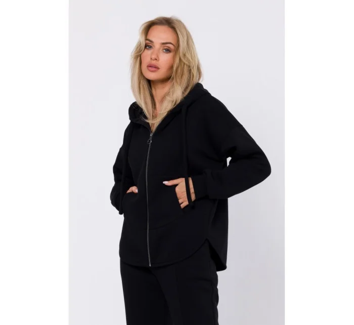 M761 Mikina s kapucí na zip a klokaní kapsou - černá
