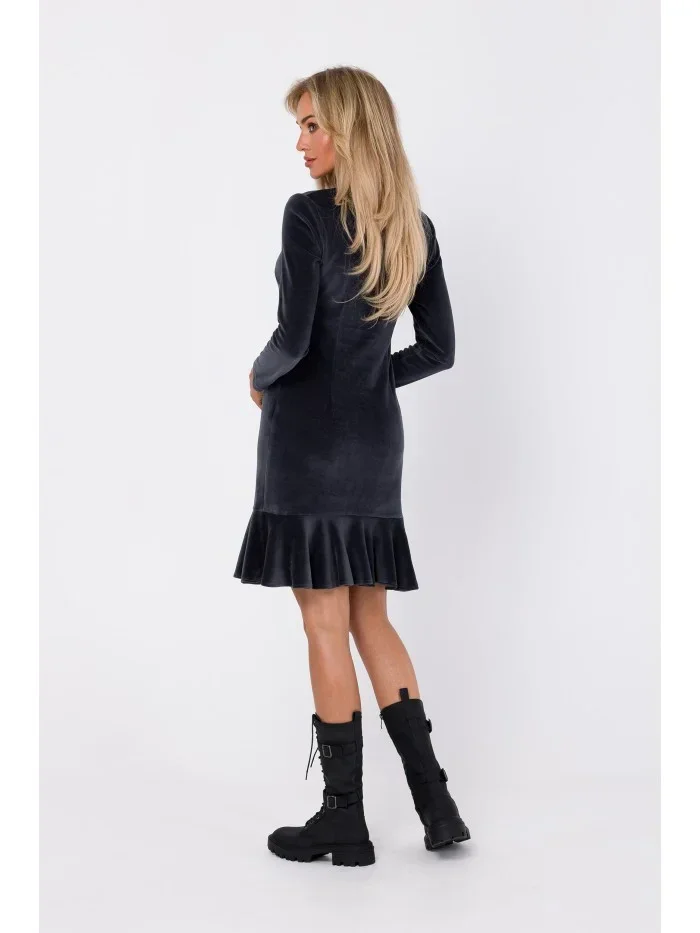 M765 Šaty s nařaseným spodním lemem - grafitové