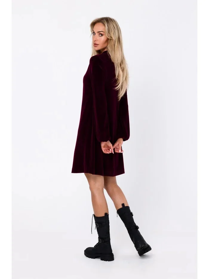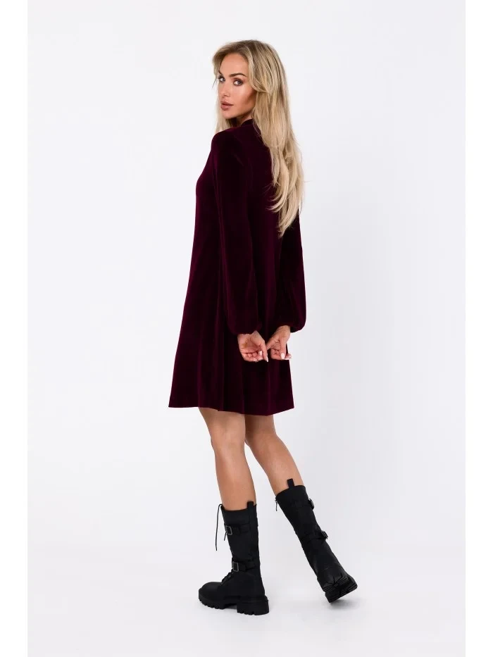 80% bavlna 20% polyester INFORMACE O PRODUKTU: pletenina - samet uvolněný střih Šaty áčkového střihu přetažené přes hlavu výstřih do V dlouhé rukávy zakončené pružným lemem délka nad kolena bez podšívky naše modelka je vysoká 171 cm a nosí velikost S Navrženo a vyrobeno v Polsku