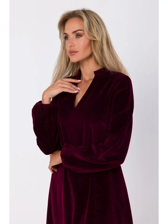 M767 Šaty s výstřihem do V - bordó
