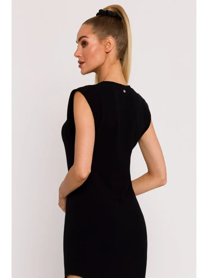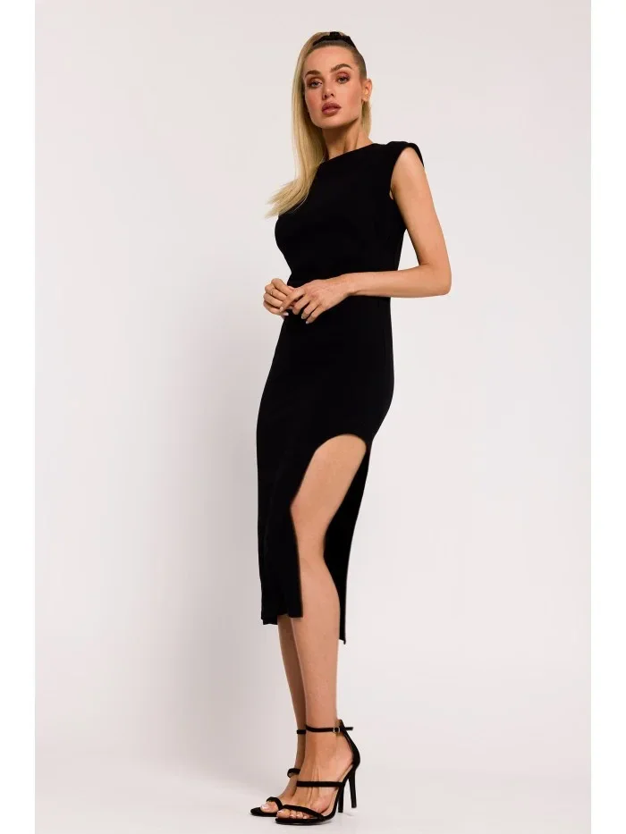 M787 Trubkové šaty s výřezem na noze - černé