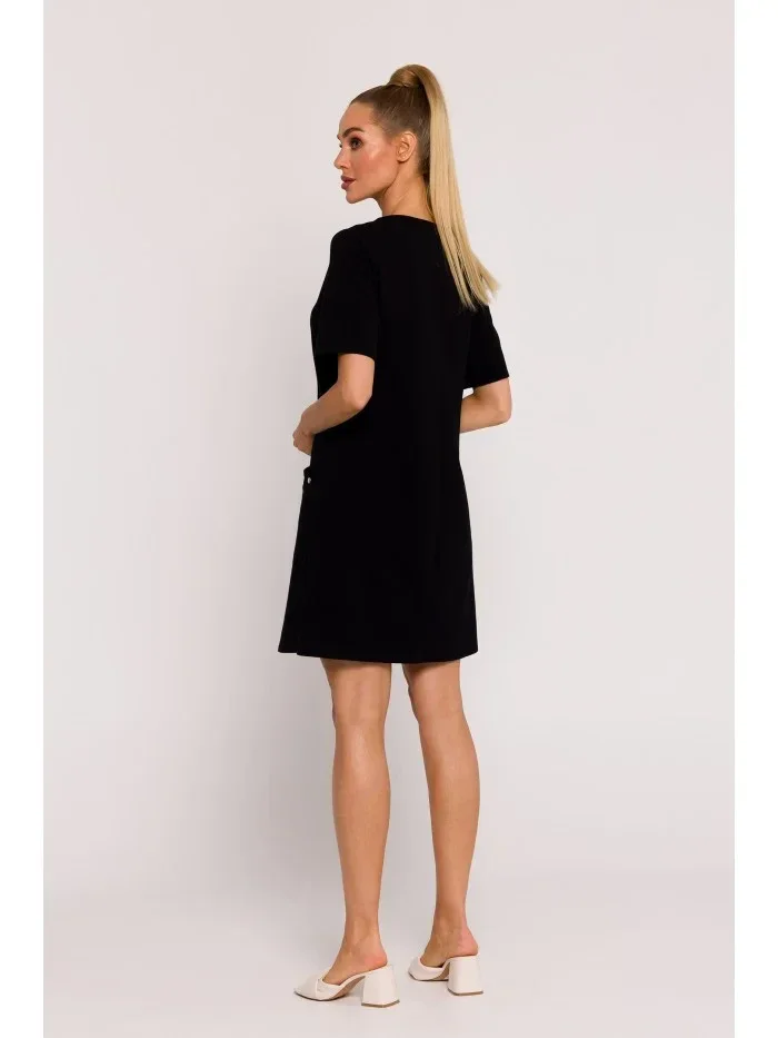 M788 Trapézové šaty s předními kapsami - černé