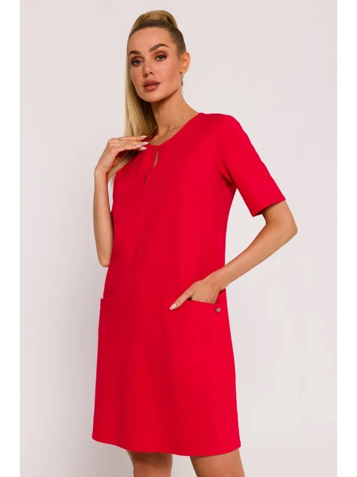 M788 Trapézové šaty s předními kapsami - červené