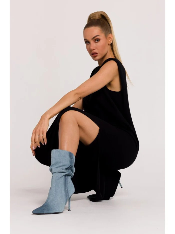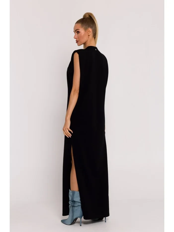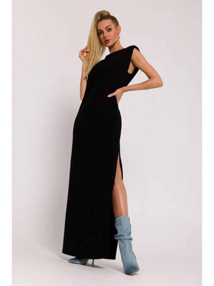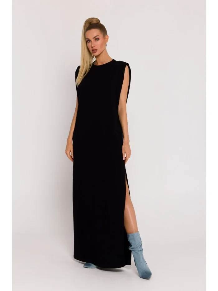 M790 Maxi šaty s vycpávkami na ramenou - černé