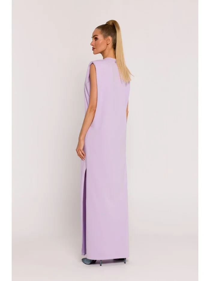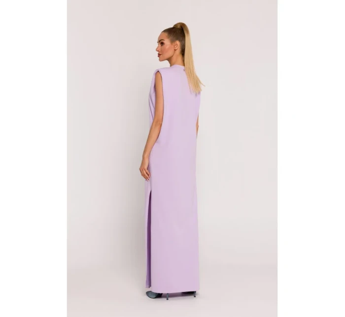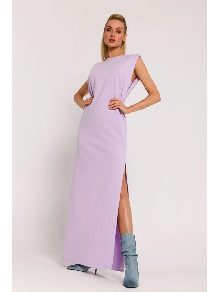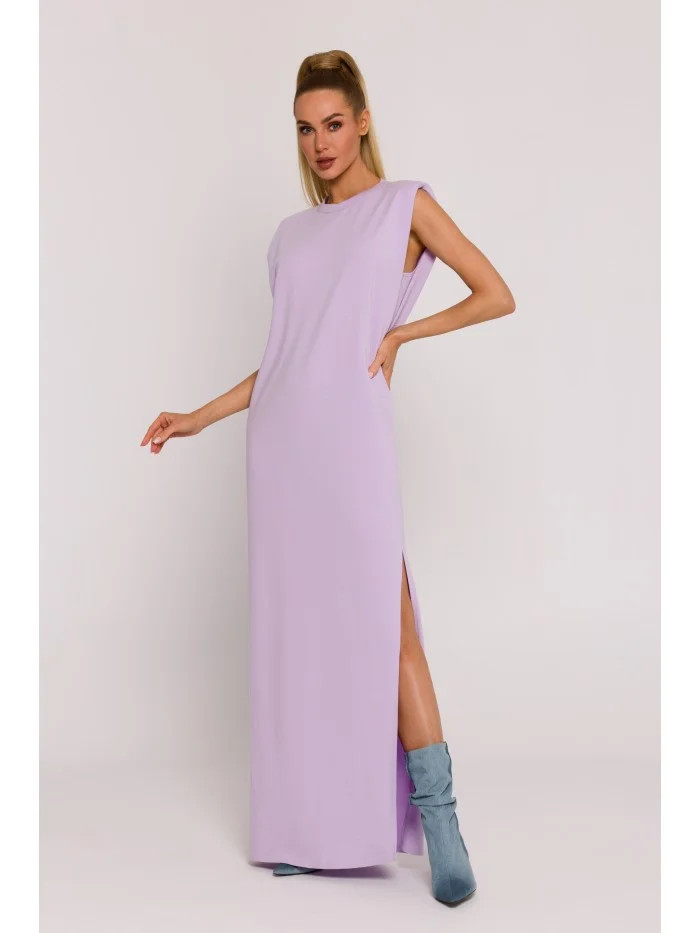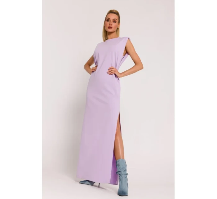 M790 Maxi šaty s vycpávkami na ramenou - fialové