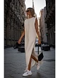 92% bavlna 8% elastan INFORMACE O PRODUKTU: úpletová tkanina nadměrné maxi šaty s rozdělením na boku přetažené přes hlavu bez rukávů s polstrovanými rameny ozdobný odznak s logem na zádech bez podšívky náš model je vysoký 171 cm a nosí velikost S navrženo a vyrobeno v Polsku