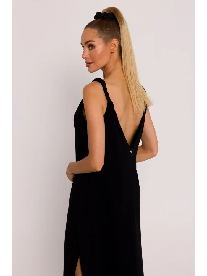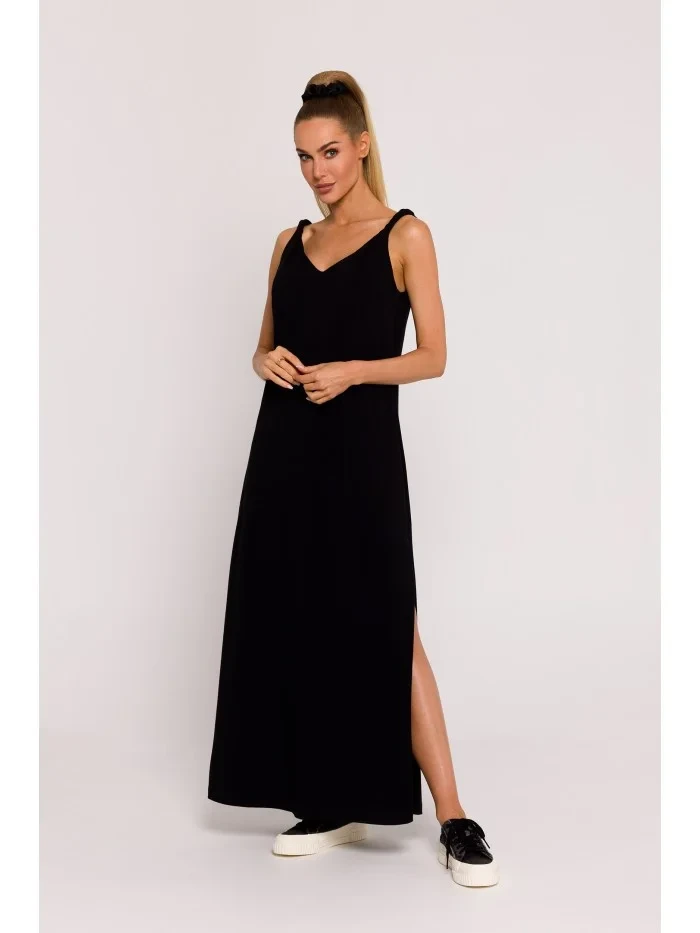 M791 Maxi šaty s hlubokým výstřihem do V - černé
