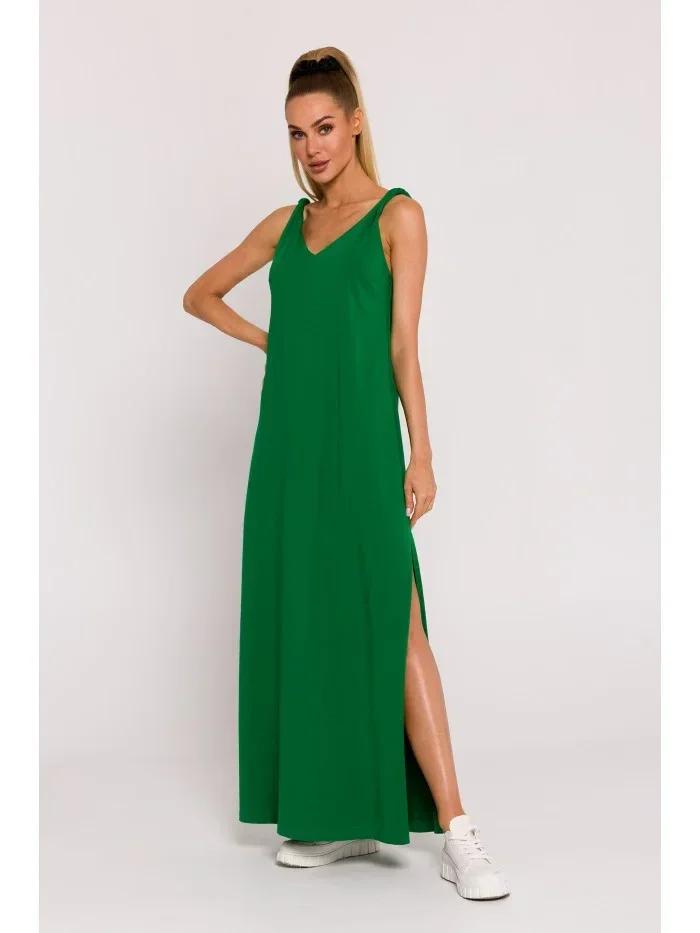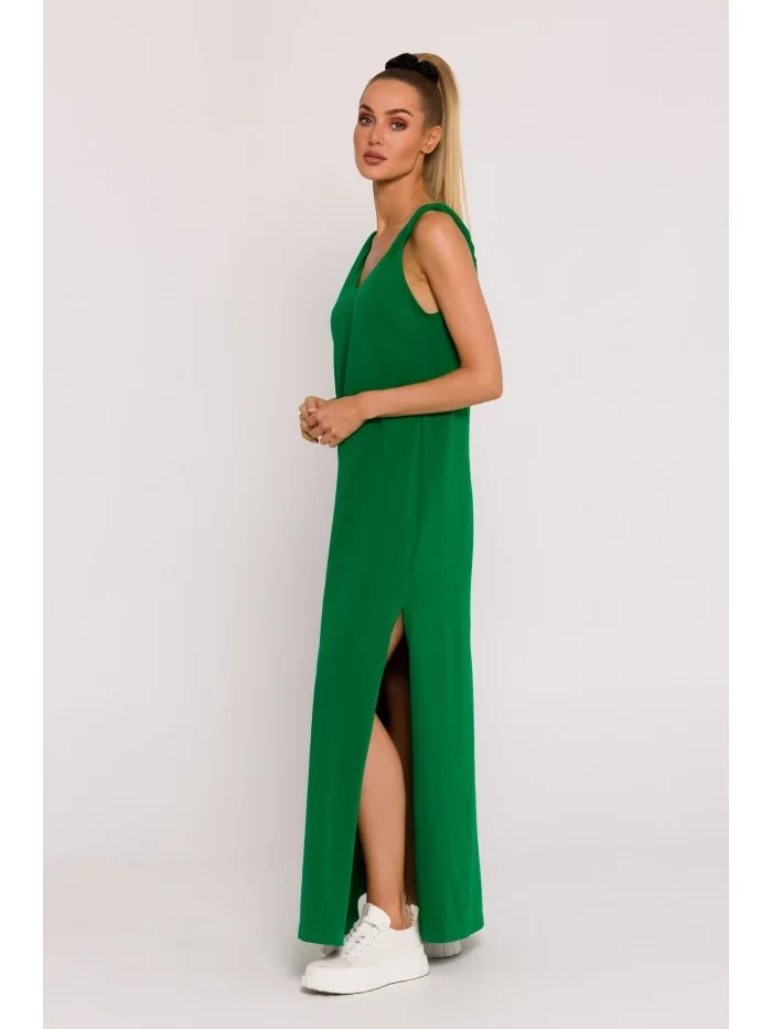 M791 Maxi šaty s hlubokým výstřihem do V - zelené