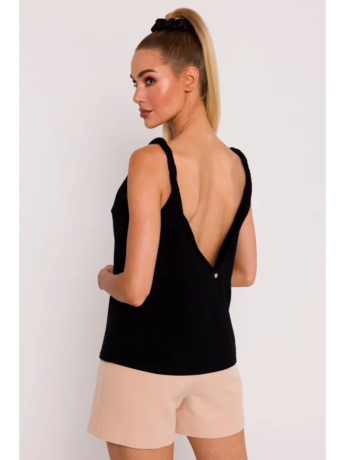 Komfortowy, bezszwowy top wykonany z nowej dzianiny rozciągającej się w pionie i poziomie, podwójna warstwa materiału, bez fiszbin, nie krępuje ruchów, wyjmowane wkładki zapewniające naturalny kształt i potrzymanie, brak zapięcia z tyłu, dzianina typu double-face, zapobiega rolowaniu się brzegów