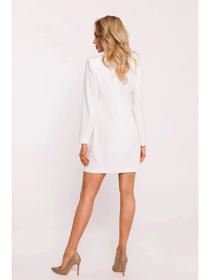 95% polyester 5% elastan INFORMACE O PRODUKTU: tkaná látka blejzrové šaty s límečkem regular fit dlouhý rukáv pevné ozdobné zlaté knoflíky vpředu délka nad kolena skrytý zip na zádech bez podšívky naše modelka je vysoká 171 cm a nosí velikost S navrženo a vyrobeno v Polsku