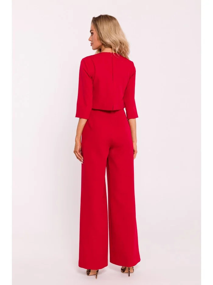 95% polyester 5% elastan INFORMACE O PRODUKTU: tkaná látka kombinéza s širokými nohavicemi krátký rukáv dvouvrstvý top skrytý zadní zip boční kapsy bez podšívky naše modelka je vysoká 171 cm a nosí velikost S navrženo a vyrobeno v Polsku