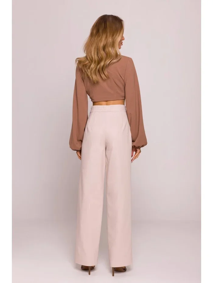 76 % bavlna 21 % polyester 3 % elastan INFORMACE O PRODUKTU: tkanina na bázi bavlny široké kalhoty elastický pas zapínání na zip a patentky boční kapsy náš model měří 171 cm a nosí velikost S navrženo a vyrobeno v Polsku