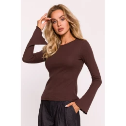 M806 Žebrovaný top s dlouhými rukávy - hnědý