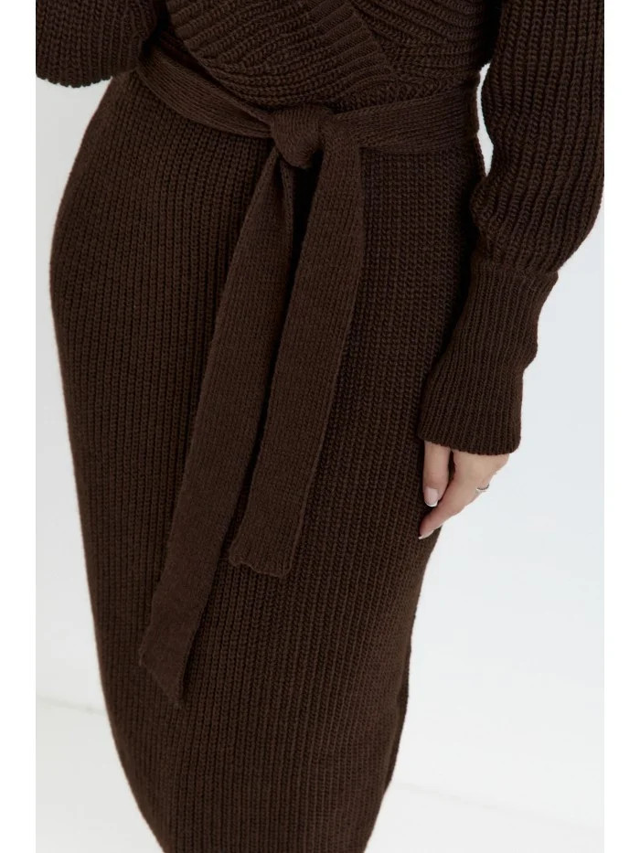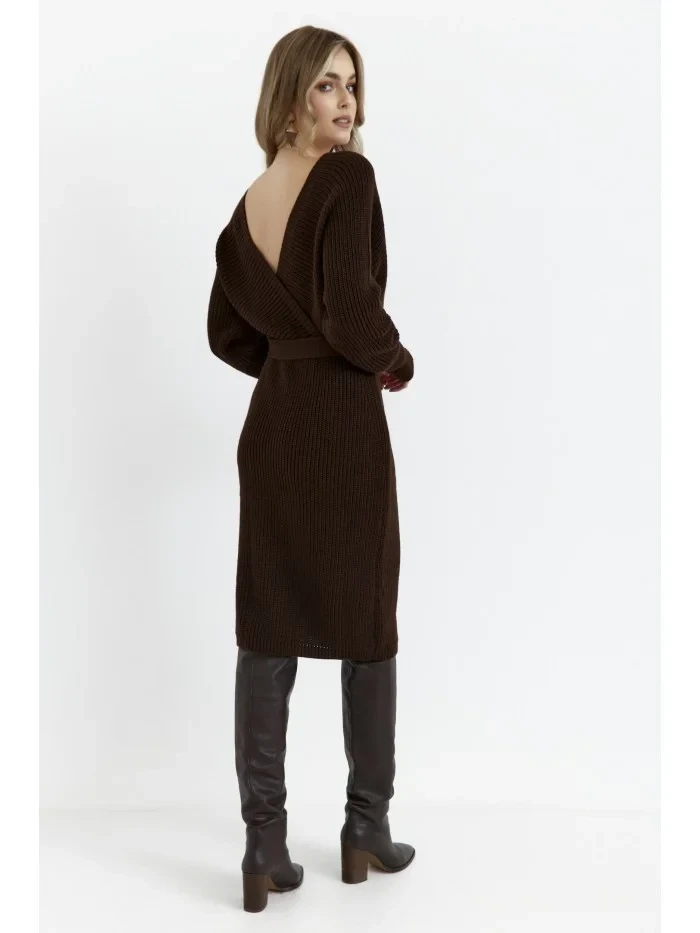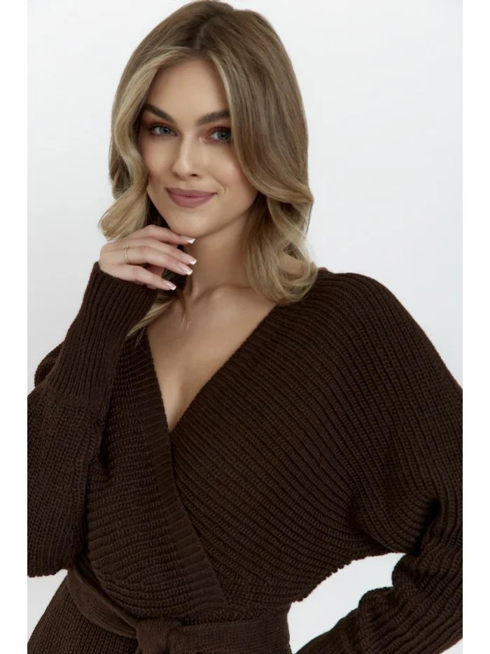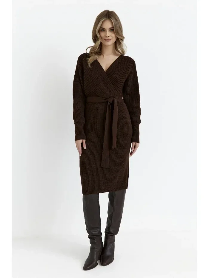 M810 Svetrové šaty s výstřihem do V - hnědé