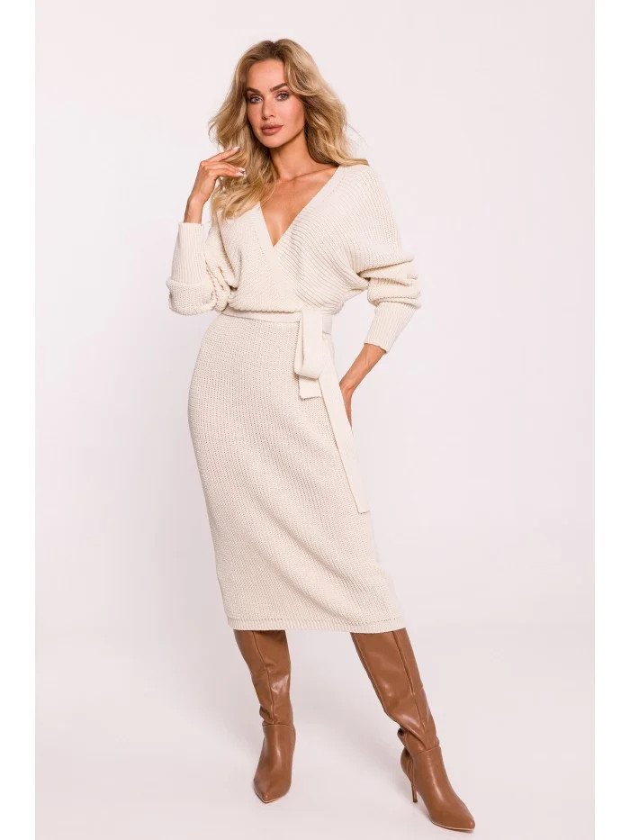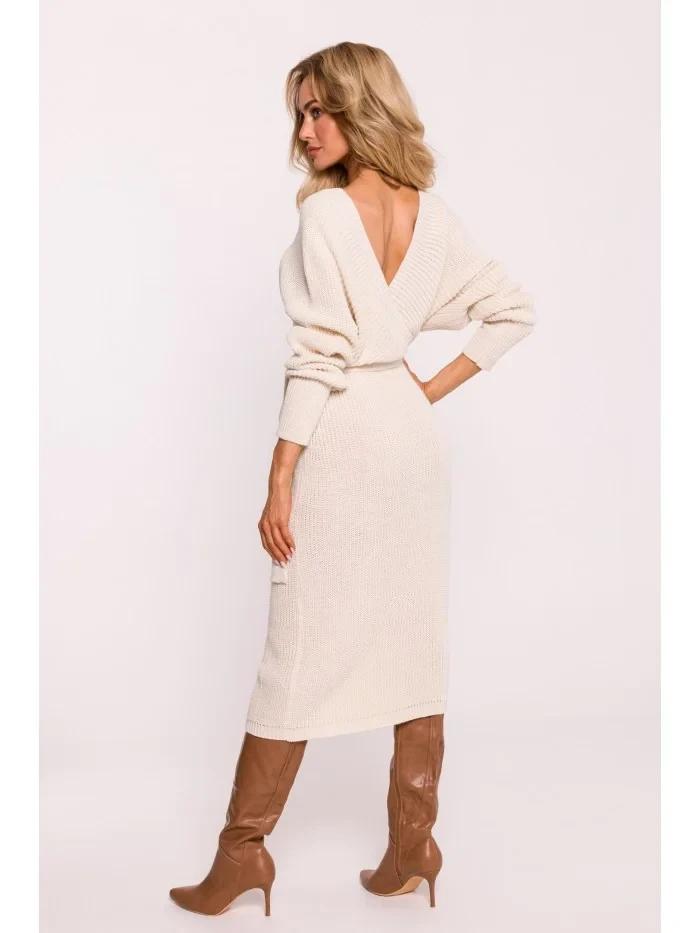 M810 Svetrové šaty s výstřihem do V - slonová kost