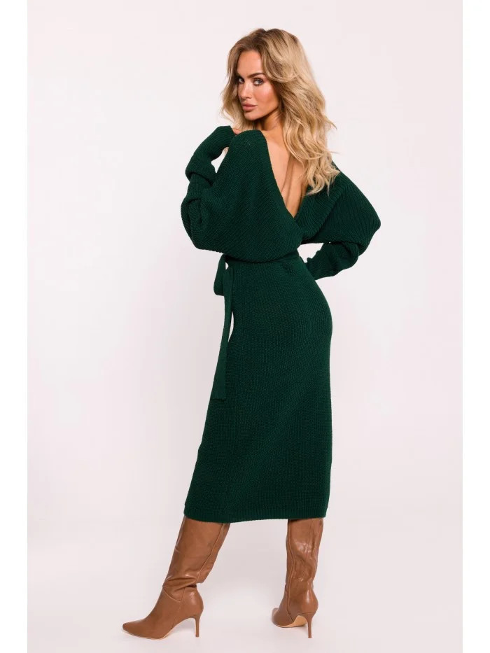 M810 Svetrové šaty s výstřihem do V - zelené