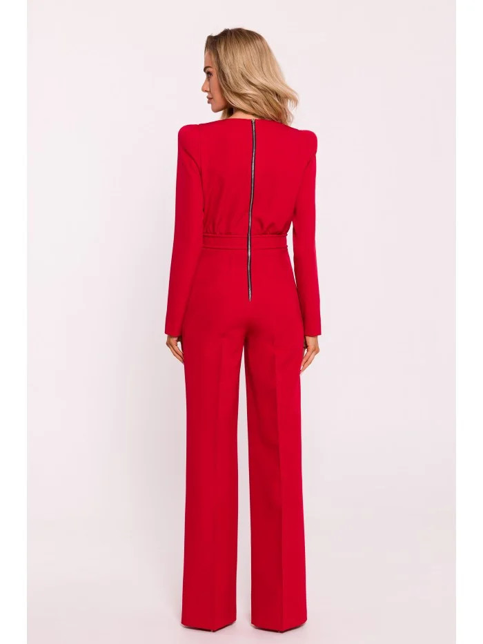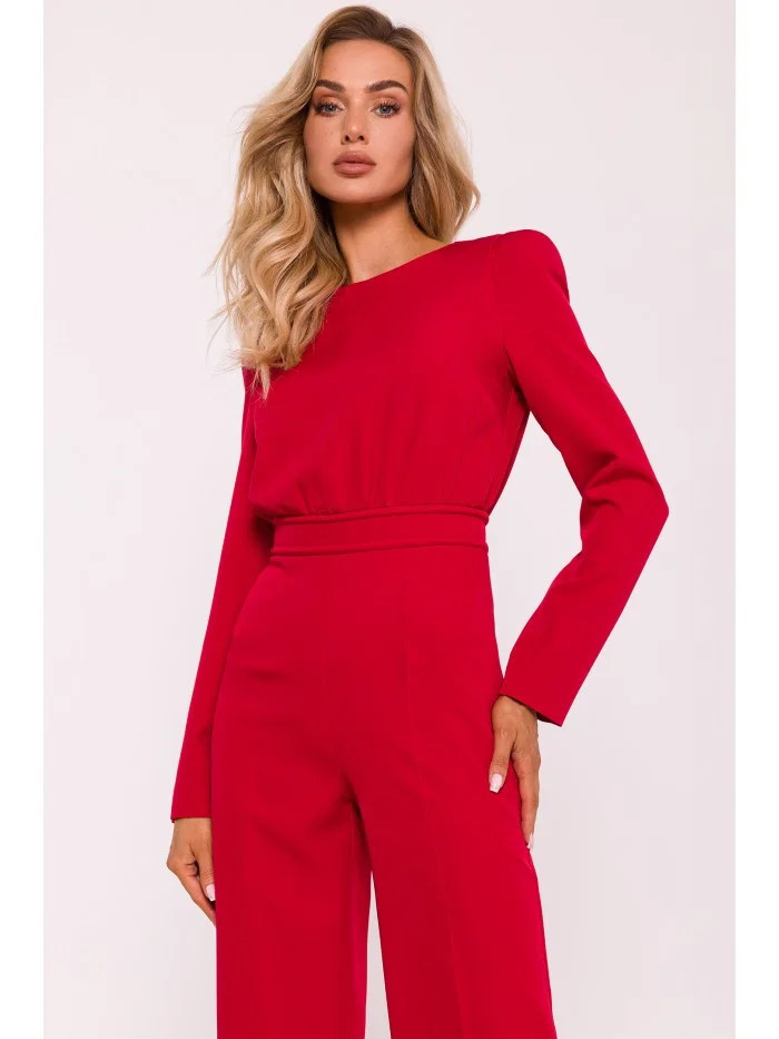95 % polyester 5 % elastan INFORMACE O PRODUKTU: tkaná látka kombinéza se širokými nohavicemi vypasovaný horní díl a stahování v pase dlouhé rukávy s polstrovanými rameny odhalený zadní zip bez podšívky naše modelka je vysoká 171 cm a nosí velikost S navrženo a vyrobeno v Polsku