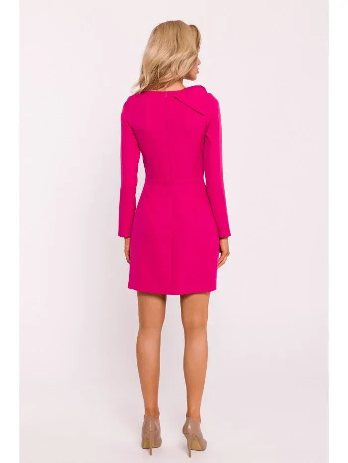 M814 Mini šaty s mašlí na rameni - fuchsiová