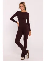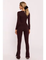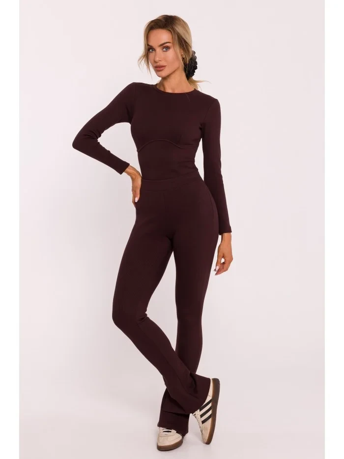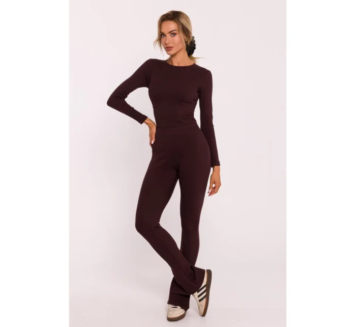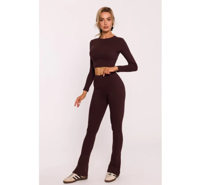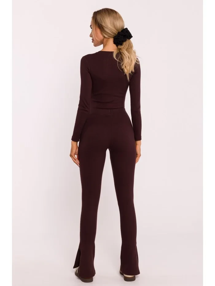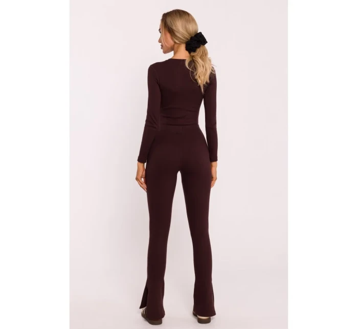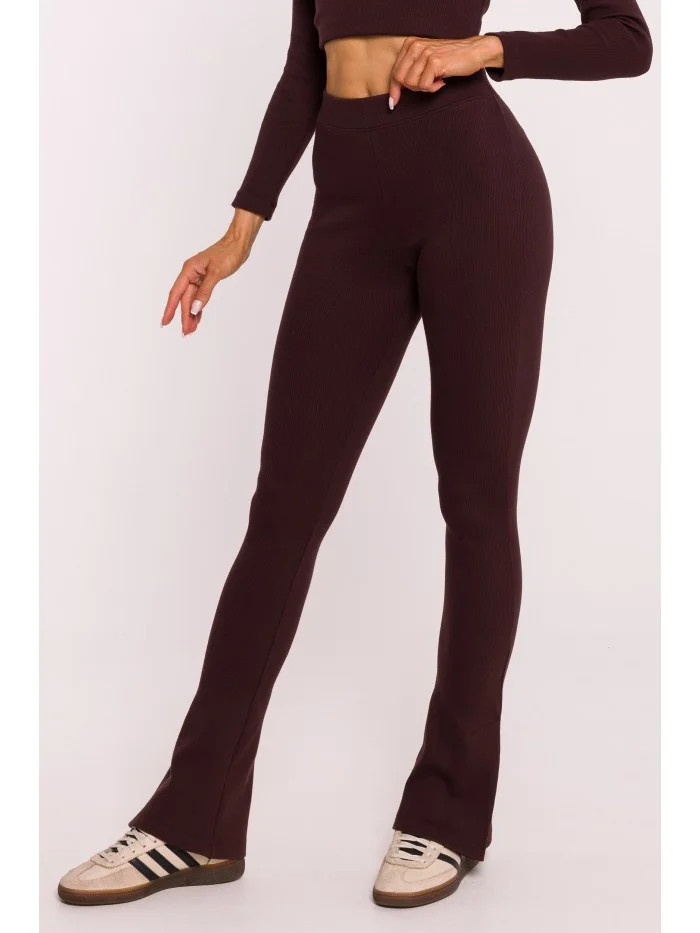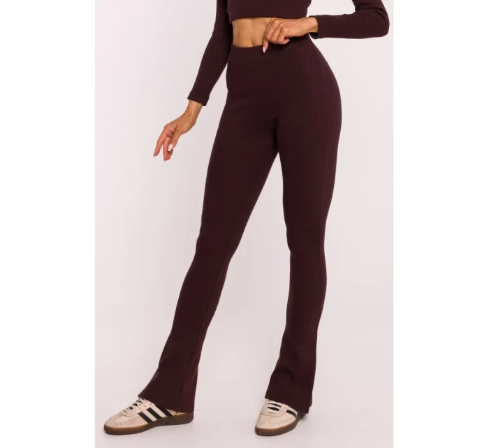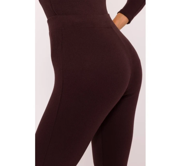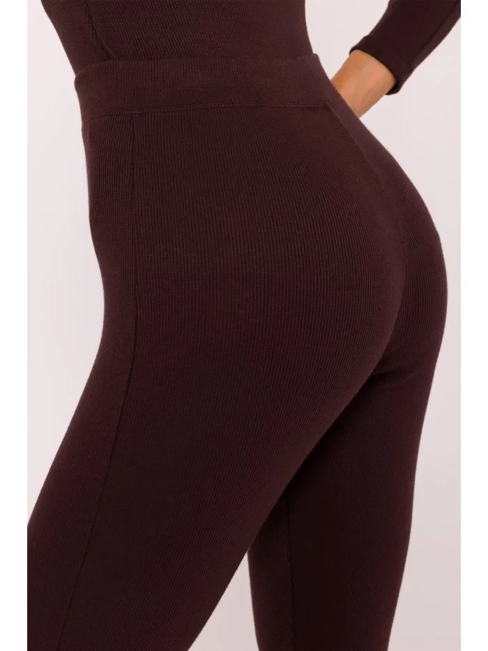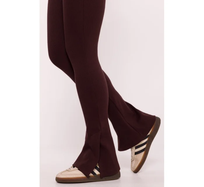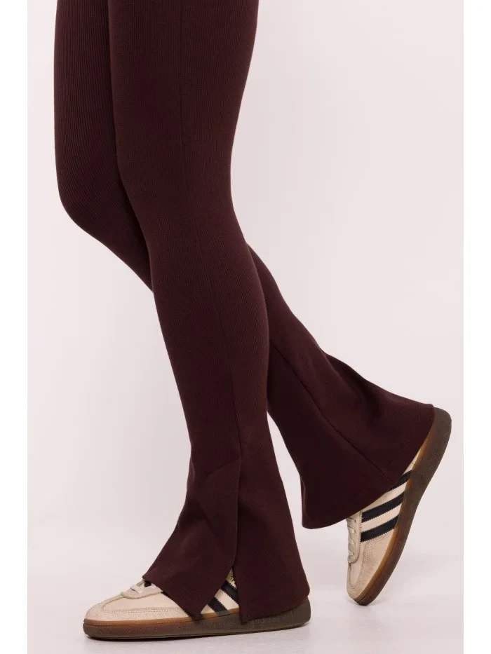 M816 Žebrované legíny s dělenou nohavicí - hnědé