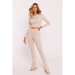 M816 Žebrované legíny s dělenou nohavicí - pískové