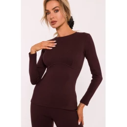 M817 Žebrovaný korzetový top s dlouhými rukávy - hnědý