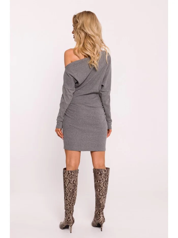 M818 Pletené šaty s kapkou na ramenou - šedý melír