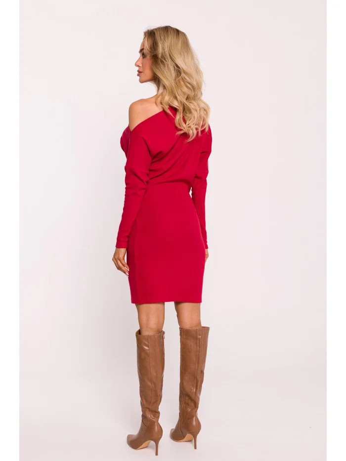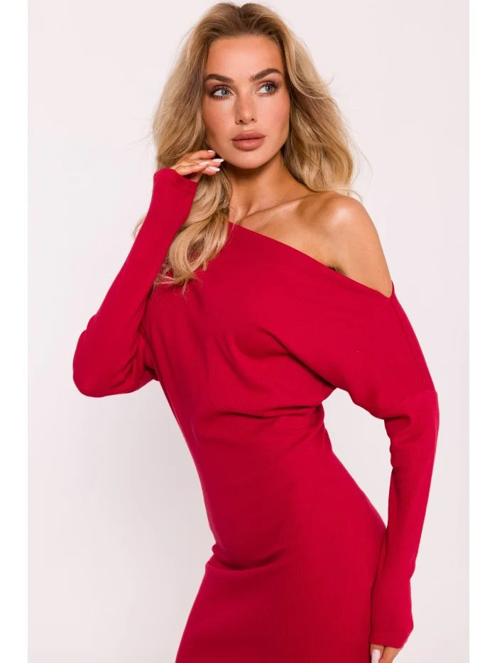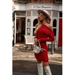 Přidání recenze k M818 Pletené šaty se spadlými rameny - červené