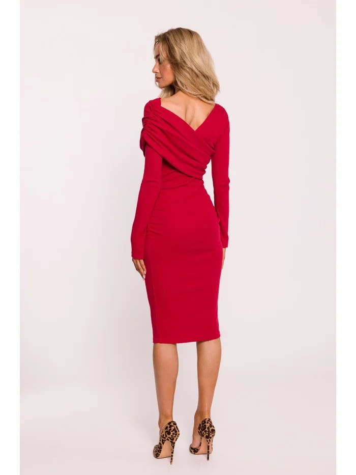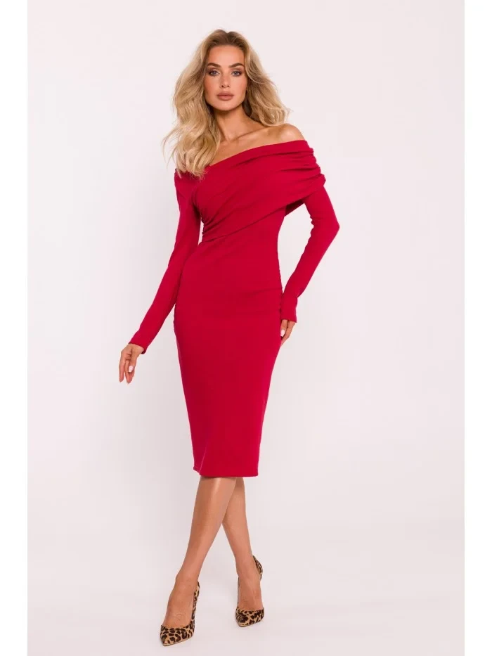Přidání recenze k M820 Asymetrické šaty s výstřihem z žebrového úpletu - červené