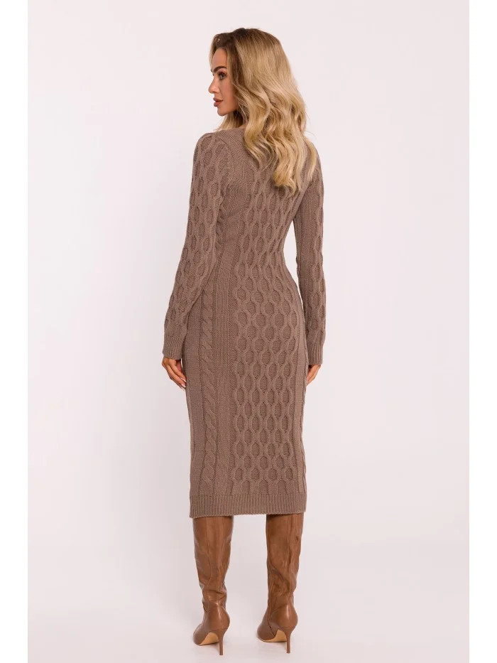 M824 Svetrové šaty s výstřihem do V - cappuccino