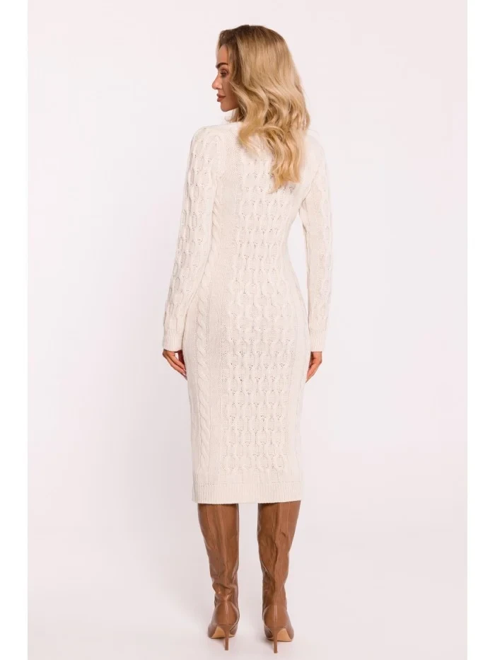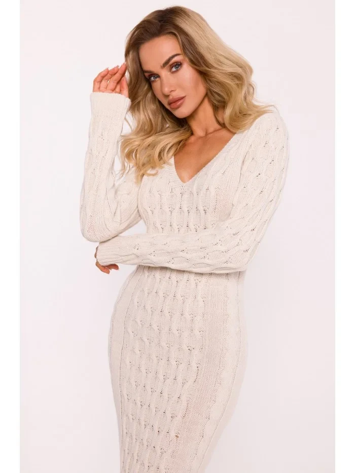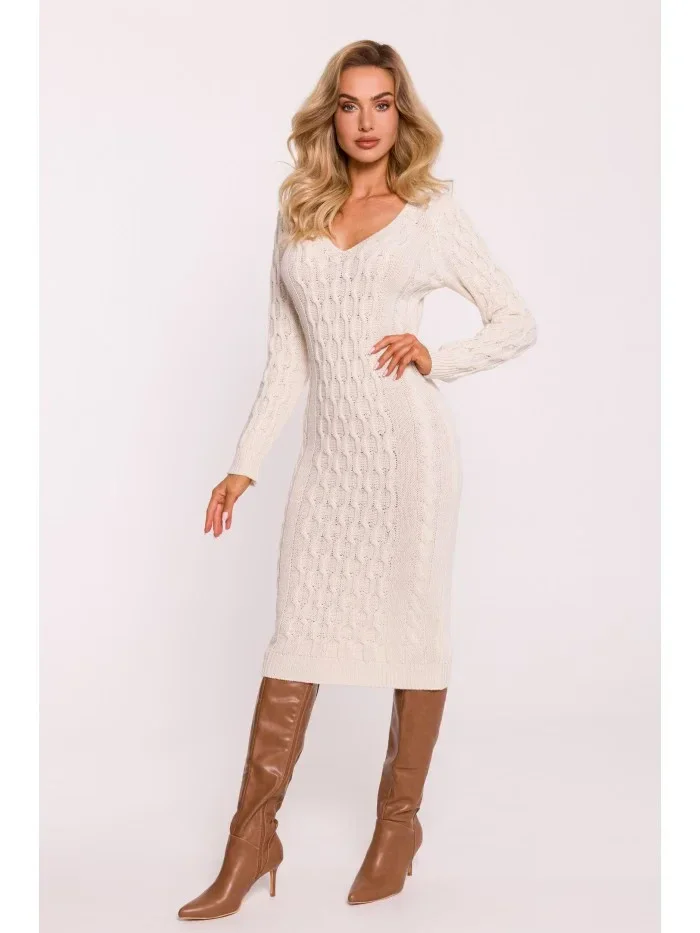 M824 Svetrové šaty s výstřihem do V - slonová kost