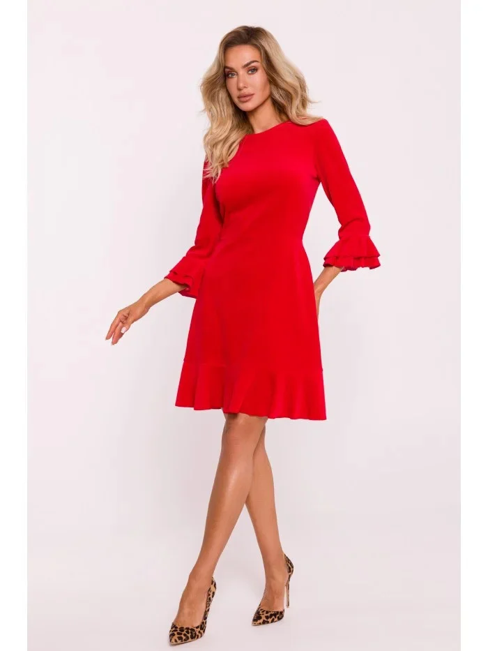 M825 Sametové šaty s volánky - červené