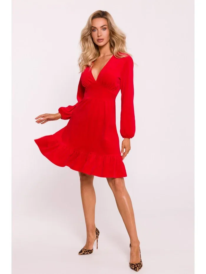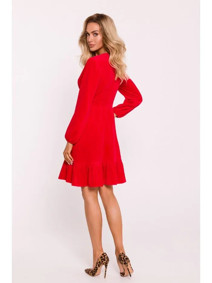M826 Sametové šaty s výstřihem do V - červené