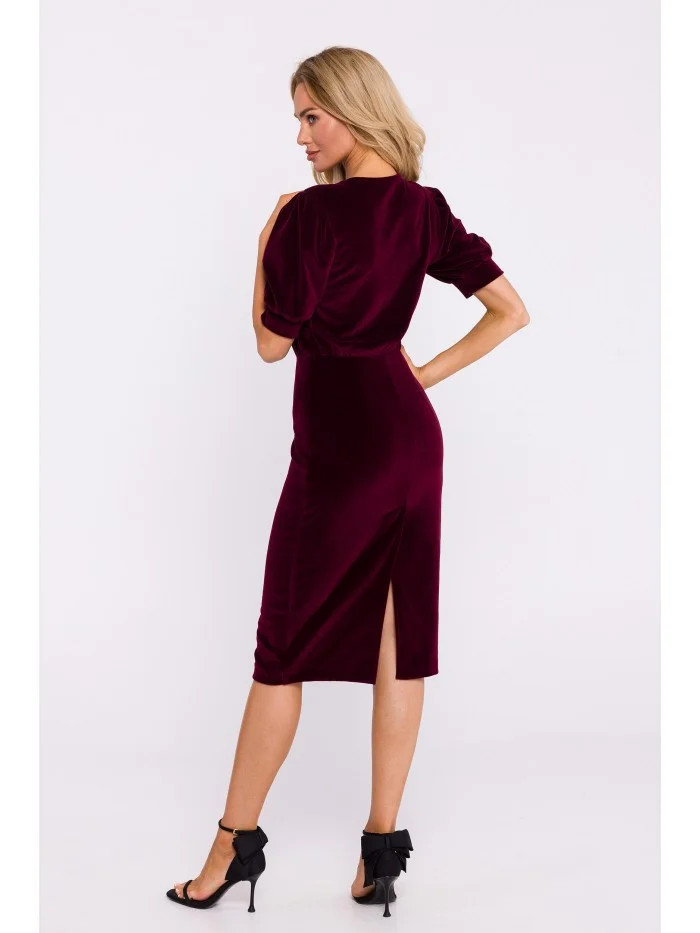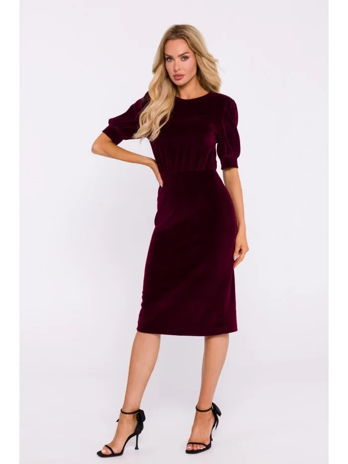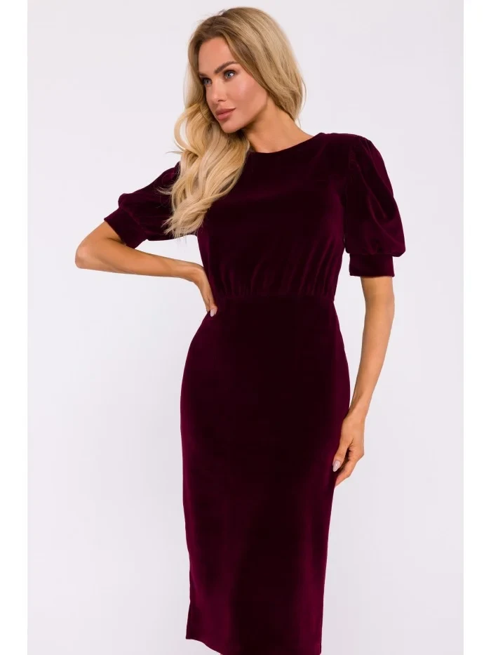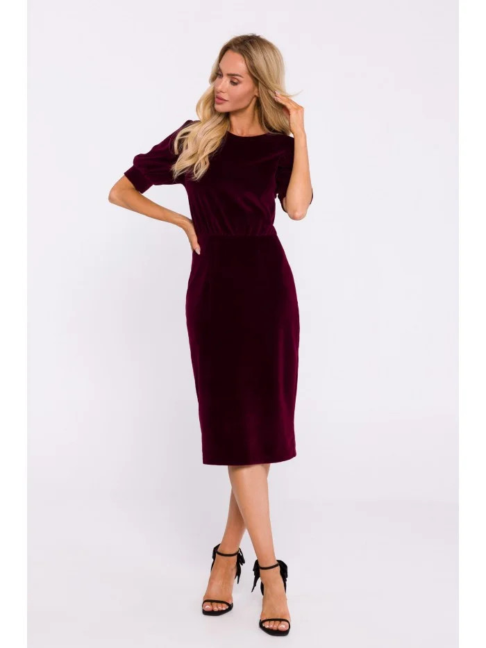 M827 Sametové pouzdrové šaty - bordó