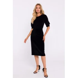80% bavlna 20% polyester INFORMACE O PRODUKTU: pletenina - sametové pouzdrové šaty přetažené přes hlavu délka pod kolena krátké rukávy s manžetami skrytý boční zip bez podšívky naše modelka je vysoká 171 cm a nosí velikost S navrženo a vyrobeno v Polsku