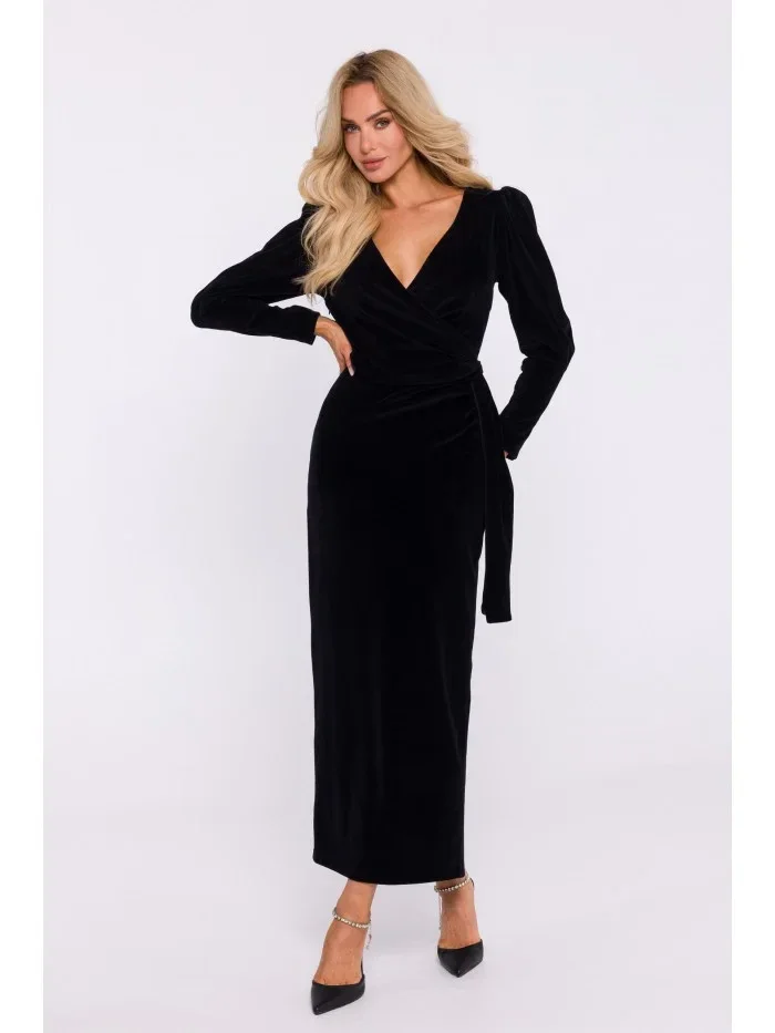 80% bavlna 20% polyester INFORMACE O PRODUKTU: úpletová tkanina - sametové maxi šaty přetažené přes hlavu zavinovací vršek s šerpou vysoké rozdělení na zádech 7/8 rukávy se záhybem částečně lemované skrytý boční zip náš model je 171 cm vysoký a nosí velikost S navrženo a vyrobeno v Polsku