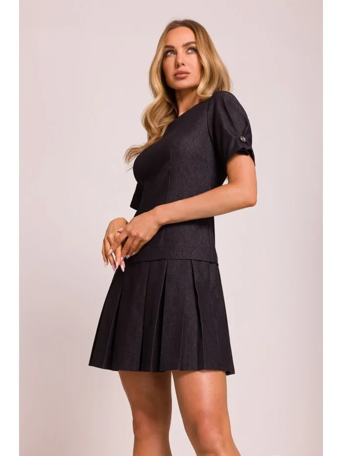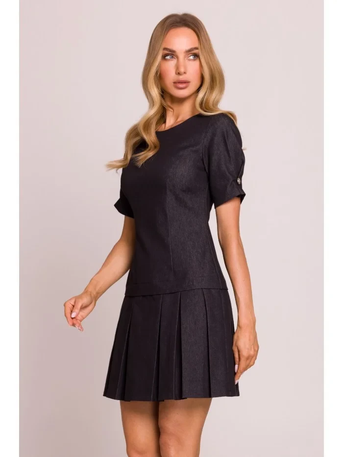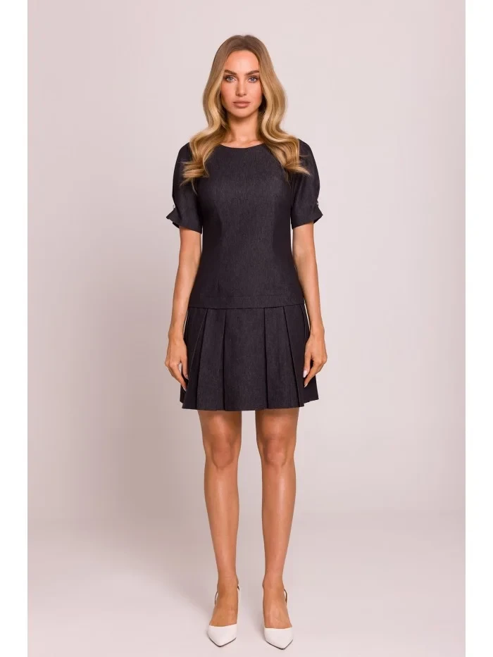 M842 Džínové šaty se záhyby - grafitové