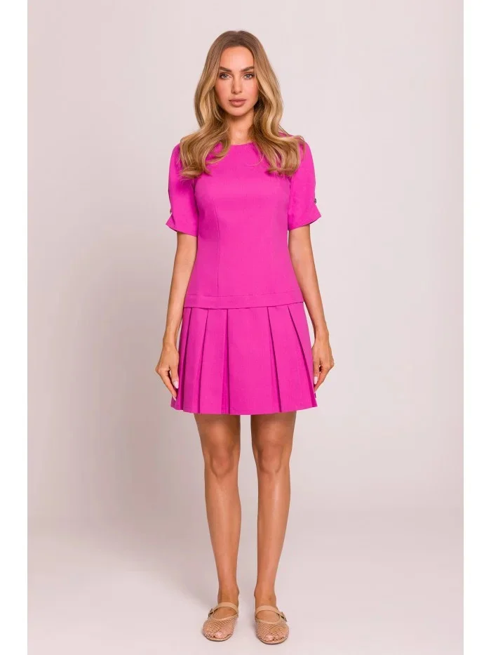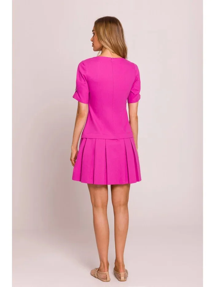 76% bavlna 21% polyester 3% elastan INFORMACE O PRODUKTU: elastická bavlněná směs tkaná látka mini šaty spadlý pas skládaný spodní lem krátké rukávy s ozdobnými knoflíky skryté zapínání na zip bez podšívky naše modelka měří 171 cm a nosí velikost S navrženo a vyrobeno v Polsku