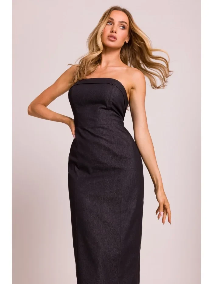 M843 Džínové midi šaty - grafitové