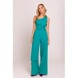 95 % polyester 5 % elastan INFORMACE O PRODUKTU: tkaná látka asymetrický jednodílný overal design na jedno rameno se šerpami na zavazování široké nohavice skrytý boční zip naše modelka je vysoká 171 cm a nosí velikost S navrženo a vyrobeno v Polsku