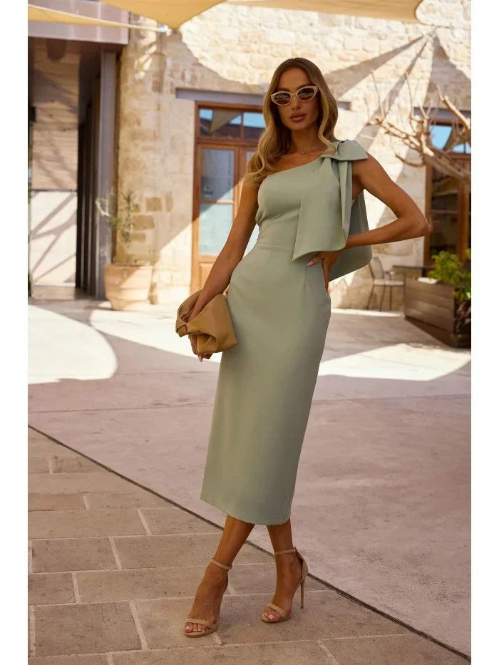 Přidání recenze k M847 Šaty na jedno rameno s mašlí - mátové