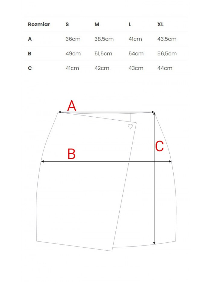 70 % polyester 27 % wiskoza 3 % elastan INFORMACE O PRODUKTU: mini sukně z tkané látky faux wrap design s jedním knoflíkem ve tvaru srdce skryté zapínání na boční zip podšitá naše modelka měří 171 cm a nosí velikost S navrženo a vyrobeno v Polsku