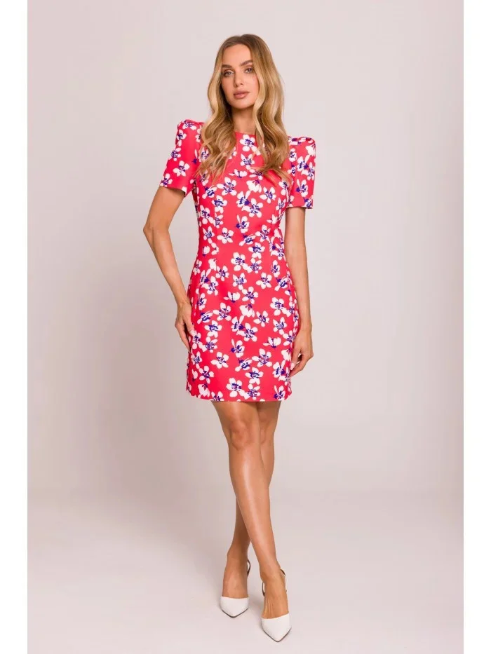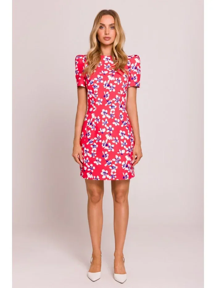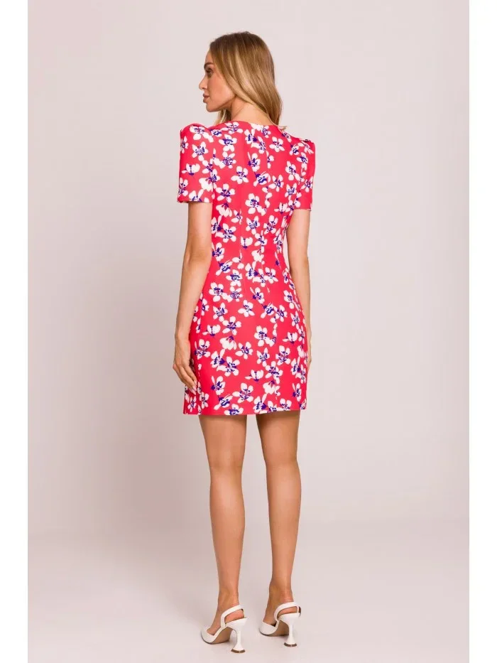 95 % polyester 5 % elastan INFORMACE O PRODUKTU: tkaná látka mini trapézové šaty krátké obláčkové rukávy ozdobné klopy vpředu s knoflíky ve tvaru srdce skrytý zadní zip bez podšívky naše modelka je vysoká 171 cm a nosí velikost S navrženo a vyrobeno v Polsku