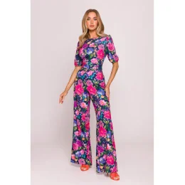 100% polyester PODŠÍVKA 95% polyester 5% elastan MATERIÁL Materiál: jemná potištěná tkanina, matný povrch PODROBNOSTI O PRODUKTU Výstřih: vpředu kulatý výstřih, vzadu volný Kapsy: žádné Vzor: pestrobarevný, květinový Podšívka: částečně podšitá, živůtek podšitý Zapínání: skrytý zadní zip, vzadu knoflíky potažené látkou Model: M857 Navrženo a vyrobeno v Polsku Modelka na fotografii je vysoká 171 cm a má na sobě velikost S STŘIH A VÝSTŘIH Střih: na míru/univerzální střih Tvar: vypasovaný top s širokými nohavicemi Délka: po celé délce nohavic Délka rukávů: krátké nadýchané rukávy, nabírané, s manžetou
